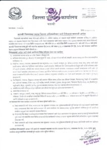सरकारी कार्यालय तथा बैँक वित्तिय संस्थाले नेपाल सरकारले जारी गरेका जनस्वास्थ्य तथा सुरक्षाका मापदण्डहरुको पूर्ण पालना गरी सरकारी कार्यालय तथा अत्यावश्यक सेवाहरु सञ्चालन गर्न सक्ने र कार्यालयहरुमा न्यूनतम कर्मचारी उपस्थित हुने गरी सेवा प्रवाहको व्यवस्था मिलाउन सकिने प्रशासनले जनाएको छ । त्यसैगरी बैँक तथा वित्तिय संस्थाका न्यूनतम शाखा सञ्चालन हुनेछन् ।