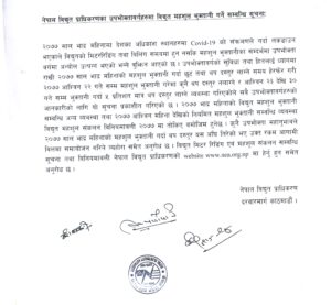 प्राधिकरणले जारी गरेको सूचनामा भनिएको छ, ‘२०७७ साल भाद्र महिनामा देशका अधिकांश स्थानहरुमा कोभिड १९को संक्रमणले गर्दा लकडाउन भएकाले विद्युतको मिटर रिडिंग तथा विलिंग समयमा हुन नसकि महशुल भुक्तानीका सन्दर्भमा उपभोक्ता वर्गमा अन्योल उत्पन्न भएको भन्ने वुझिन आएको छ ।