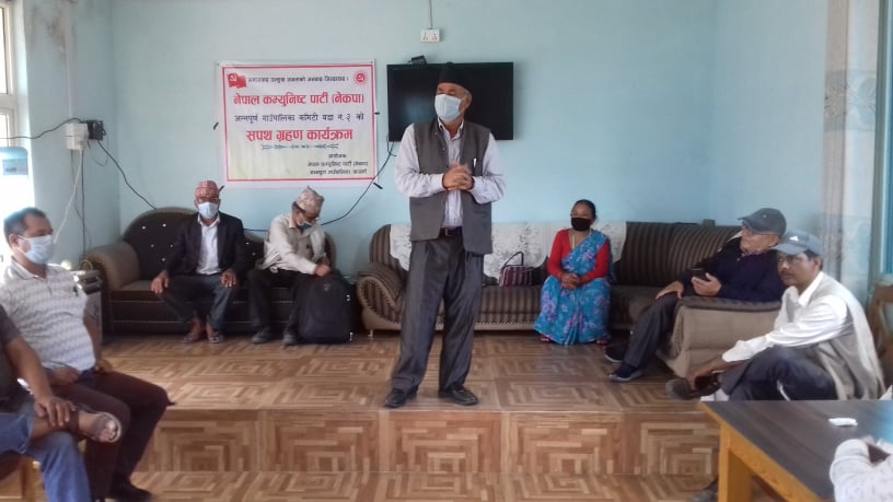 हिमाली आवाज । नेपाल कम्युनिष्ट पार्टी (नेकपा) अन्नपूर्ण गाउँपालिका कमिटी अन्र्तगत रहेका विभिन्न वडा कमिटीको सपथ ग्रहण कार्यक्रम बिहीवारदेखि सुरु भएको छ। जसअन्र्तगत पहिलो दिन वडा नं. ३ कमिटिको सपथ ग्रहण सम्पन्न भयो। पार्टीका गण्डकी प्रदेश कार्यालय सदस्य पुण्यप्रसाद पौडेलले वडा कमिटी सदस्यलाई सपथ गराएका थिए ।