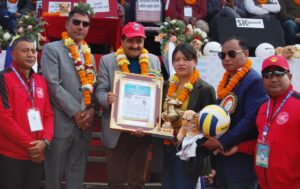 हिमाली आवाज । नेपाली राष्ट्रिय महिला भलिबल टोलीका पूवए उपकप्तान मञ्जु गुरुङ र पूर्व राष्ट्रिय खेलाडी लेखनाथ लम्साल शनिबार पोखरामा सम्मानित हुनुभएको छ ।