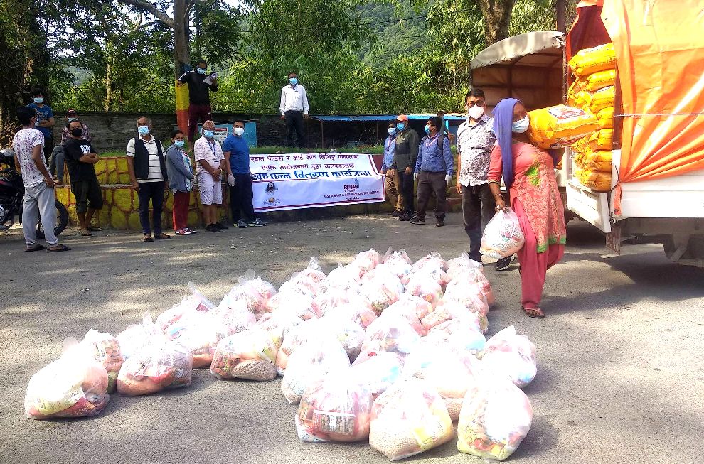 फेवाताल किनार बाराहीघाटमा शुक्रबार विहान भएको राहत वितरण कार्यक्रममा फेवातालका विभिन्न घाटमा कार्यरत डुङ्गा चालकहरुलाई खाद्यान्न सामग्री वितरण गरियो । उनीहरुलाई १ बोरा चामल सहित दाल, चना, केराउ, नुन, तेल, मस्यौरा तथा स्वास्थ्य सामग्री स्यानिटाइजर, मास्क, साबुन लगायत जनही २५ सय बराबरको राहत सामग्री वितरण गरिएको द आर्ट अफ लिभिङ्ग, गण्डकी प्रदेश प्रमुख नरेशबहादुर भट्टराईले जनाकारी दिनुभयो ।