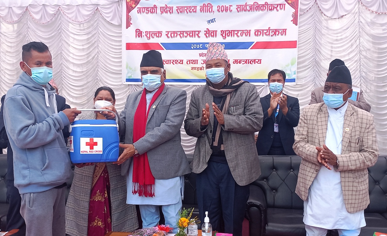 गण्डकी प्रदेश सरकारले नेपाल रेडक्रस सोसाइटीसँग रगत निःशुल्क गर्नका लागि सम्झौता गरेको छ । प्रदेशका सम्पूर्ण स्वास्थ्य संस्थाहरुमा उपचार गराइरहेका बिरामीलाई निःशुल्क रगत उपलव्ध हुने गराइने मन्त्रालयले जनाएको छ ।