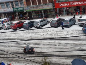 सडकमा असिना जमेर गाडी गुड्न अप्ठ्यारो भएपछि प्रहरीले असिना हटाउन सुरु गरेको हो । असिना पानीले सडक अवरुद्ध हुँदा चालक र पैदलयात्रु सडकमै रोकिन बाध्य भएका थिए ।