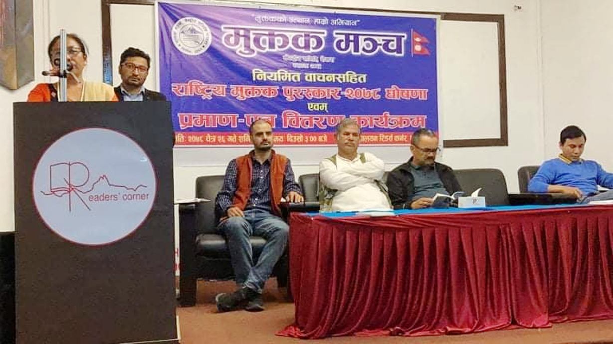 हिमाली आवाज । मुक्तक मञ्च केन्द्रीय समितिद्वारा सञ्चालित एवम् साहित्यकार विष्णु अल्पविरामद्वारा स्थापित राष्ट्रिय मुक्तक पुरस्कार २०७८ बाट चेतन कार्कीलाई मरणोपरान्त सम्मान गरिने भएको छ ।