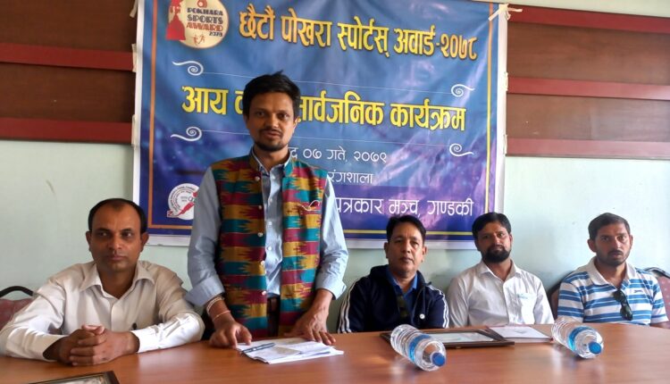 मञ्चले २०७२ सालदेखि पोखरामा निरन्तर स्पोट्र्स अवार्ड कार्यक्रम गर्दै आएको छ। गत असारमा भएको छैटौं सस्करणको अवार्ड कार्यक्रममा वर्ष पुरुष÷महिला खेलाडीमा क्रमश प्रदिप खड्का र अरुणा शाही घोषित हुनुभएको थियो । उहाँहरुले एक–एक थान इलेक्ट्रिक स्कुटर पाउनुभयो ।