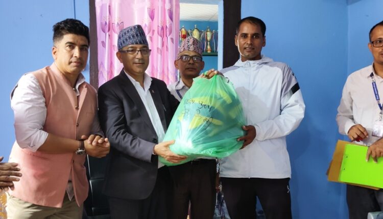 महानगर खेलकुद विकास समितिले आज महानगर प्रमुख धनराज आचार्यको उपस्थितिमा रु १० लाख बराबरको खेल सामग्री रङ्गशालामा खेलसम्बद्ध सङ्घ संस्था, प्रशिक्षक र खेलाडीलाई वितरण गरेको हो ।