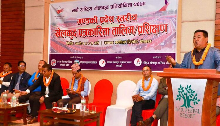 हिमाली आवाज । गण्डकी प्रदेशमा यही असोज २८ देखी कात्तिक ३ गतेसम्म आयोजना गरिएको नवौँ राष्ट्रिय खेलकुद प्रतियोगितामा समाचार सङ्कलन र सम्प्रेशणलाई सरल बनाउन सञ्चारकर्मीहरुका लागि खेलकुद पत्रकारिता तालिम सुरु भएको छ ।