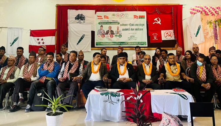 यसैक्रममा कास्की जिल्ला निर्वाचन क्षेत्र नम्वर ३ मा लोकतान्त्रिक–बाम गठबन्धनले उमेद्वारहरुको परिचय तथा संयुक्त कार्यकर्ता भेला सम्पन्न गरेको छ ।