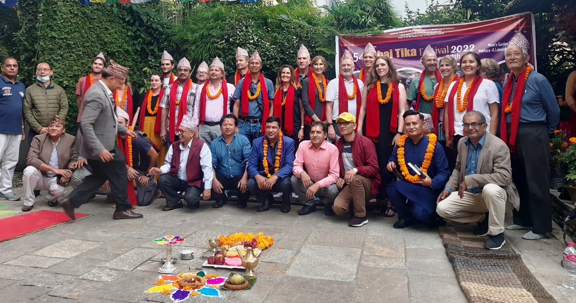 हिमाली आवाज । होटल संघ पोखरा नेपालले तिहारका अवसरमा विहीबार आयोजना गरेको १५ औं भाइटिका महोत्सव २०७९ मा देशविदेशका पर्यटक सहित ३५ जनाले सहभागिता जनाएका छन् । महोत्सवमा अमेरिका, अष्ट्रेलिया, क्यानाडा, जापान, इटली, जर्मनी लगायतका देशका पर्यटकले भाग लिएको संघले जनाएको छ ।