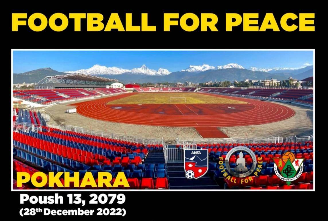 शान्तिका लागि फुटवल भन्ने नारा सहित नेपालको पोखरा र काठमाण्डौंमा गरी दुई ठाँउमा दुई दिने हुने उक्त ऐतिहासिक खेल खेल्न स्पेनको टोली आजको क्रिसमस पर्व मनाएसंगै भोलि (आइतबार) नेपाल तर्फ आउने भएको उनले जनाए । वल्र्ड कप र यूरो कपमा खेलेका खेलाडीहरु पोखरा र काठमाण्डौंको मैदानमा खेल्नु नै नेपालको लागि ठुलो उपलब्धी र ऐतिहासिक हुने महासचिव गिरीको भनाई छ ।