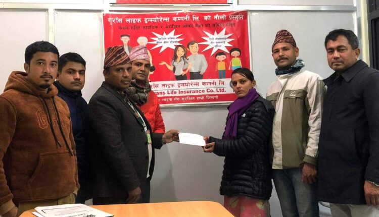 पर्यटन व्यवसायी स्व सुदीपको परिवारलाई गुराँस लाइफ इन्स्योरेन्सको २९ लाख मृत्यु दावी भुक्तानी