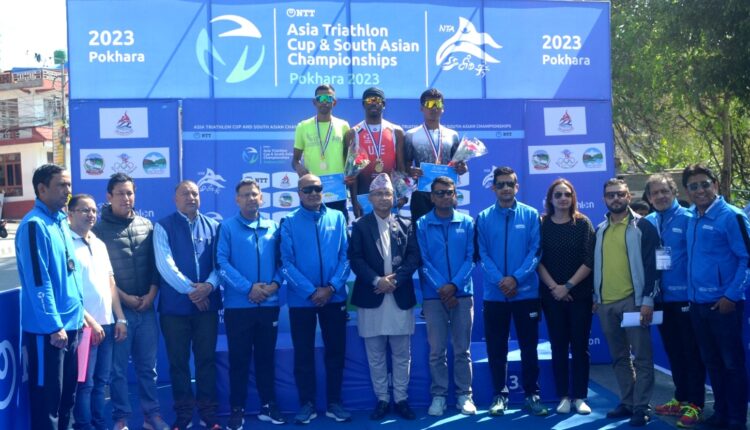 हिमाली आवाज । एशिया ट्रायथोलन कप तथा दक्षिण एशियन च्याम्पियनसीप अन्तरगत आज पोखरामा सम्पन्न दुवाथलनतर्फ पुरुषतर्फ संयुक्त अरब इमिरेट्स(युएइ)का साउद अलजावी र महिलातर्फ भारतकी स्नेहल सुनिल जोशीले च्याम्पियन हुनुभएको छ ।