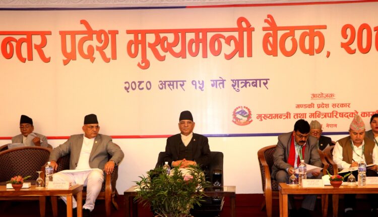 शुक्रबार पोखरामा आयोजित अन्तर प्रदेश मुख्यमन्त्री बैठकको उद्घाटन समारोहलाई सम्बोधन गर्नुहुँदै प्रधानमन्त्रीले उक्त निर्देशन दिनुभएको हो।