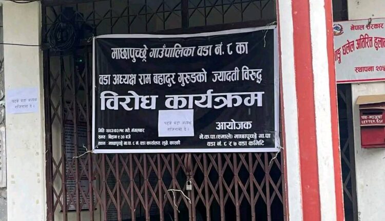 वडाध्यक्ष गुरुङमाथि कानूनी कारवाहीको माग गर्दै वडामा तालावन्दी
