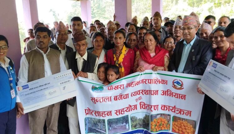पोखरा महानगरपालिकाले आइतवार आयोजित एक कार्यक्रमका महानगर प्रमुख धनराज आचार्यले सुन्तला बगैंचा व्यवस्थापन बापतको प्रोत्साहन रकम हस्तान्तरण गर्नुभयो । प्रमुख आचार्यले महानगरपालिकाले तोकेअनुसारको कृषिउपजको न्यूनतम समर्थन मूल्यबापतको आव २०७९÷८० को रकम समेत हस्तान्तरण गर्नुभयो ।