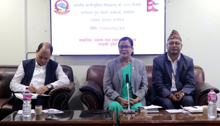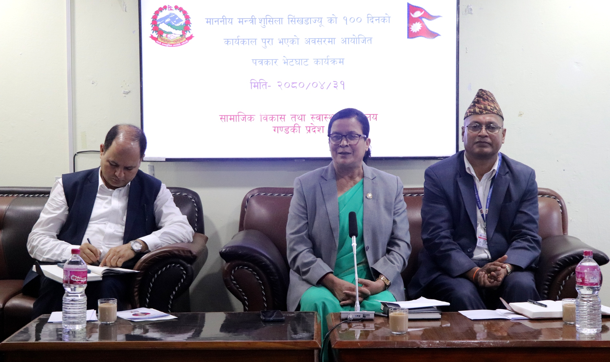 सामाजिक विकास तथा स्वास्थ्य मन्त्री सुशीला सिंखडाले आज मन्त्रालयमा आयोजना गरिएको एक सय दिनका उपलव्धी सार्वजनिक कार्यक्रममा डायलासिस सेवालाई सहज र छिटो छरितो बनाउने गरी काम अघि बढाएको बताउनुभयो ।उहाँका अनुसार प्रदेश सरकारको आफ्नै लगानीमा स्थापना भएको पोखराको सङ्क्रामक तथा सरुवा रोग अस्पतालमा डायलासिस सेवाका लागि २५ शैया क्षमताको डायलासिस केन्द्र स्थापना गरी सञ्चालनमा ल्याइएको छ ।