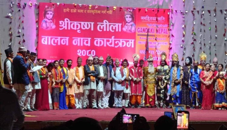 हिमाली आवाज । पोखरामा श्रीकृष्ण लिला (बालन नाच) प्रदर्शन गरिएको छ । हराउदै गइरहेको नाचको संरक्षण गर्ने उद्धेश्यले पोखरा सभागृह हलमा भव्य कार्यक्रम आयोजना गरेर बालन नाच प्रदर्शन गरिएको हो । भजन चुड्का संरक्षण प्रतिष्ठानको आयोजनामा भएको यो कार्यक्रममा बालन नाच कला प्रतिष्ठानका ६० जना कलाकारले प्रस्तुती राखेको आयोजक संस्थाका अध्यक्ष कृष्णप्रसाद गौतमले बताउनुभयो ।।