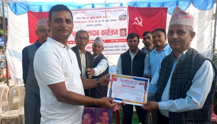 जनयुद्धका महान् शहीदद्धय सुरेश वाग्ले(वासु) र भीमसेन पोखरेल(वैरागी)को २४ औँ स्मृति दिवसका अवसरमा आयोजित रक्तदान कार्यक्रममा ५८ युनिट रगत संकलन भएको वाइसियल कास्कीका इन्चार्ज एवं गण्डकी प्रदेशका सहसंयोजक भोजराज पौडेलले जानकारी दिनुभयो ।