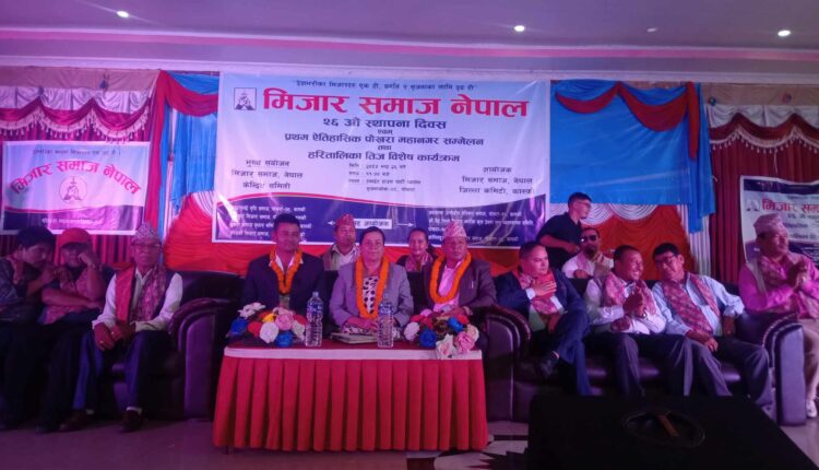 मिजार समाज नेपालको आयोजनामा मिजार समाज नेपाल २६ औं स्थापना दिवस तथा प्रथम ऐतिहासिक पोखरा महानगर सम्मेलनलाई सम्बोधन गर्दै ।