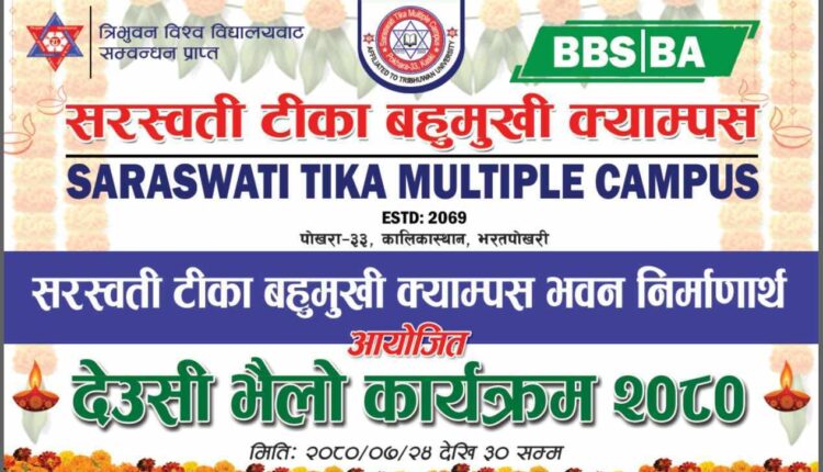 हिमाली आवाज । पोखरा महानगरपालिका वडा नं. ३३, कालिकास्थान, भरतपोखरीमा सञ्चालित सरस्वती टिका बहुमुखी क्याम्पसको भवन निर्माणार्थ यही कात्तिक २४ गतेदेखि ३० गतेसम्म देउसीभैलो गरिने भएको छ ।