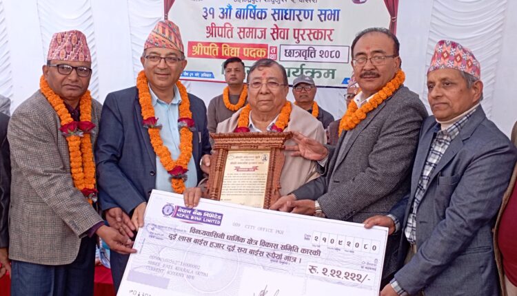 हिमाली आवाज । पोखराको श्रीपती कोइराला गुठीद्वारा सञ्चालित श्रीपती समाज सेवा पुरस्कार–२०८० आज विन्ध्यवासिनी धार्मिक क्षेत्र विकास समितिलाई प्रदान गरिएको छ ।