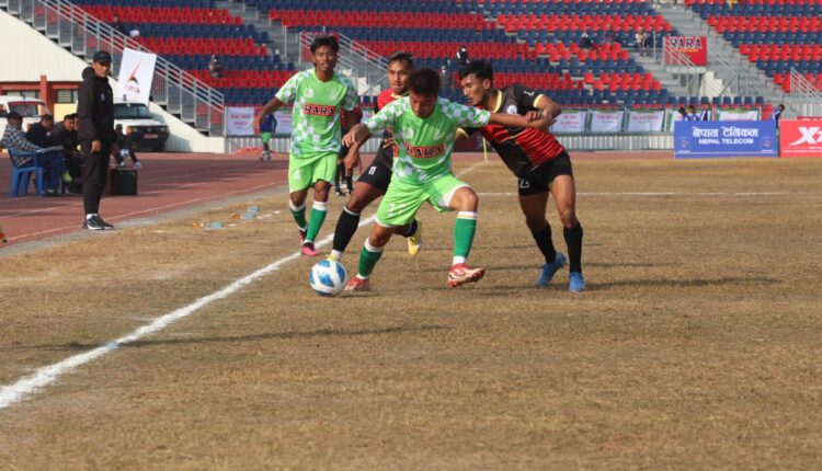 खेलको पाँचौ मिनेटमा कप्तान योगेश गुरुङले फ्रिकिकमा आएको बल पेनाल्टी एरियामा नियन्त्रणमा लिँदै गोल गरेपछि थ्रिस्टारले अग्रता बनायो । तर २३ औँ मिनेटमा सहाराका आशिष गुरुङले बराबरी गोल गर्दै खेलमा फर्किन सफल भयो । गुरुङले हेडमार्फत गोल गर्नुभयो ।