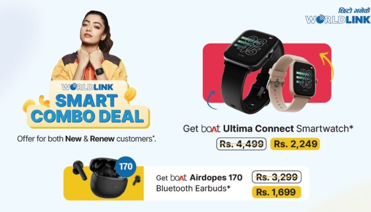 हिमाली आवाज । इन्टरनेट सेवा प्रदायक कम्पनी वल्र्डलिंकले स्मार्ट कम्बो डिल नामक नयाँ अफर आफ्ना ग्राहकका लागि सार्वजनिक गरेको छ । कम्पनीले यो अफर ग्राहकका लागि अहिलेसम्मकै उत्कृष्ट डिल भएको दाबी गरेको छ । यस अफर अन्तर्गत ग्राहकले बोट ब्रान्ड को अल्टिमा स्मार्टवाच र बोट एयरडप्स १७० खरिदमा ५० प्रतिशतसम्मको छुट पाउन सक्नेछन् ।