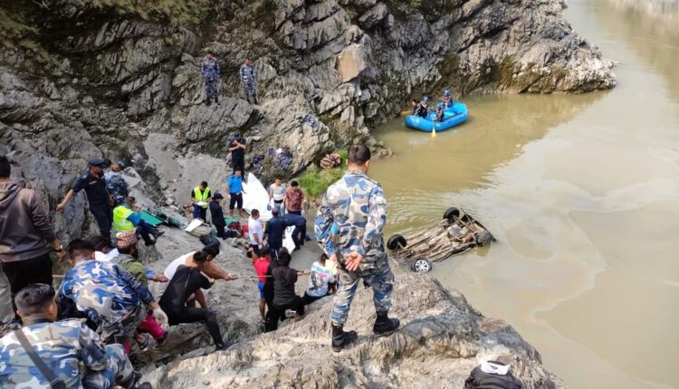 हिमाली आवाज । काठमाडौंबाट गाेरखा आउदै गरेकाे ट्याक्सी त्रिसुली नदिमा खस्दा आज पाँच जनाकाे मृत्यु भएकाे छ।   जिल्ला प्रहरी कार्यालय चितवनका अनुसार मृत्यु हुनेमन ट्याक्सी चालक गोर्खा नगरपालिका वडा नम्बर ७ का ३५ वर्षीय अर्जुन शिर्मल, सोही ठाउँकी ४१ वर्षकी हरिमाँया रोकाय , ७० वर्षीय जुनकिरी रोकाय , अन्जना रोकाय र अन्दाजी ९ वर्षका आगमन नगरकोटी रहेका छन् । अर्का १८ बर्षीय दिवश रोकाया फेला नपरेको प्रहरीले जनाएको छ ।