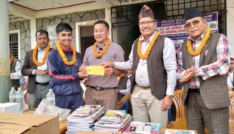 हिमाली आवाज । मर्दिखोला नेपाल शैक्षिक प्रतिष्ठानले कास्कीमा १० लाख बराबरको शैक्षिक सामाग्री तथा छात्रवृत्ति वितरण गरेको छ । प्रतिष्ठानको २५ औं वार्षिकोत्सवको अवसरमा कास्कीभित्रका सात सरकारी विद्यालयलाई शैक्षिक सामाग्री तथा सरकारी विद्यालयका ५ जेहेन्दार विद्यार्थीलाई छात्रवृत्ति प्रदान गरिएको हो ।