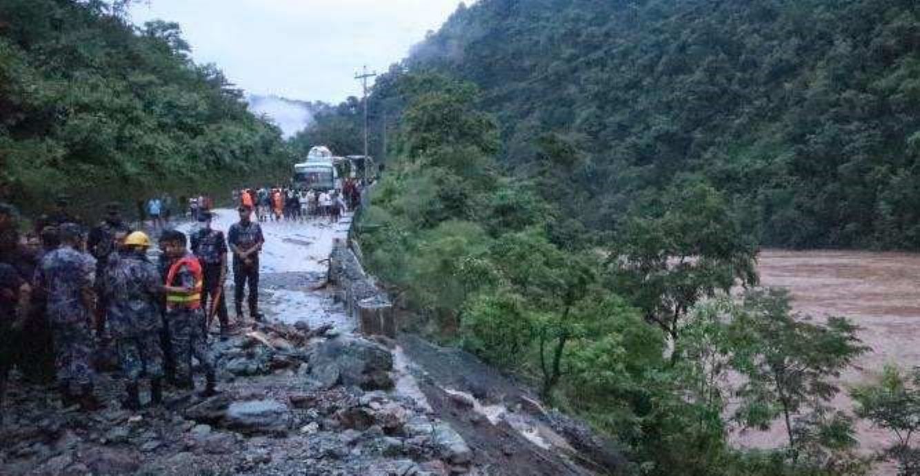 नारायणगढ–मुग्लिन सडकमा पहिराले दुई वटा बस बगायो, ६० बढी यात्रु बेपत्ता