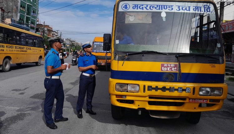 पोखरा महानगरपालिका वडा नं. ५ जिरो किमि स्थित सडकखण्डमा पोखरा नगर भित्र संचालित ५५ वटा स्कुलबसहरुको गति लिमिट एवं सिट क्षमता सम्बन्धमा सवारी साधनहरुको चेकजाँच गरिएको प्रहरीले जनाएको छ ।