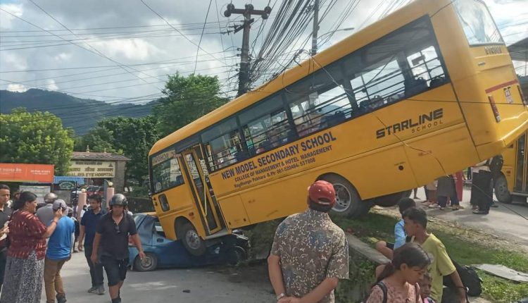 हिमाली आवाज । पोखरा महानगरपालिका वडा नं १७ मा आज दिउँसो स्कुल बस दुर्घटना हुँदा चालक घाइते भएका छन् । चालकले नियन्त्रण गुमाउँदा नागढुङ्गास्थित न्यू मोडल सेकेण्डरी स्कुलको बस दुर्घटना भएको प्रहरीले जनाएको छ ।