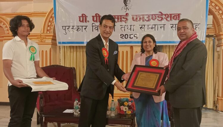 प्रजापति(पिपि) प्रसाई प्रतिष्ठानले आज काठमाडौँमा आचार्यलाई पिपि प्रसाई क्षेत्रीय उत्कृष्ट शिक्षक पुरस्कार नगद रु ५० हजार तथा सम्मानपत्रबाट पुरस्कृत गरेको हो । शिक्षा विज्ञान तथा प्रविधिमन्त्री विद्या भट्टराईले सो पुरस्कार प्रअआचार्यलाई अर्पण गर्नुभयो ।