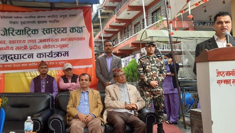 हिमाली आवाज । पोखरा महानगरपालिका वडा नं १७ सीताको पाइलास्थित पोखरा बृद्धाश्रममा स्थापित पोखरा जेरियाट्रिक स्वास्थ्य कक्षको उद्घाटन गरिएको छ ।उक्त कक्षको शनिबार स्वास्थ्य तथा जनसंख्या मन्त्री प्रदीप पौडेलले उद्घाटन गर्नुुभएको हो ।