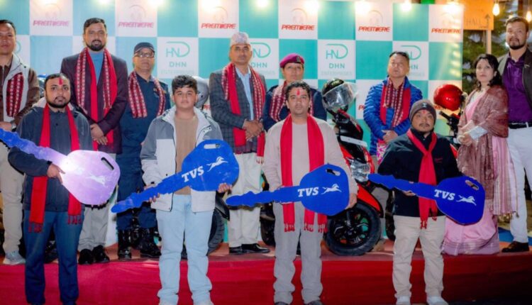 हिमाली आवाज । प्रिमियम व्राडका एशोसरिजहरुको गण्डकीका लागि आधिकारिक विक्रेता डि एच एन ईन्टरप्राईजेजले आफ्ना ग्राहक व्यवसायीलाई लक्षित गरी लक्की ड्र मार्फत् चार वटा टिभिएस ब्राण्डका स्कुटर वितरण गरेको छ । कम्पनीले एक लाख भन्दा वढी मुल्यका एशोसरिजहरु किनेका व्यवसायीहरुलाई लक्की ड्र मार्फत् स्कुटर वितरण गरेको हो ।