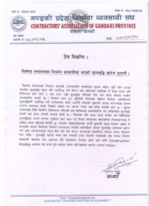 हिमाली आवाज । गण्डकी प्रदेश निर्माण व्यवसायी संघले हालै निर्माण सामग्रीमा भएको अस्वभाविक मृल्यबृद्धि खारेज गर्न माग गरेका छ ।