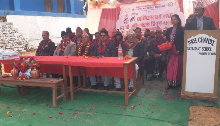 हिमाली आवाज । पोखरा महानगरपालिका वडा नं ३३ भरतपोखरीको बरभोटेनीस्थित चण्डी माध्यमिक विद्यालयको ६२ औं वार्षिकोत्सव एवम् ६३ औं अभिभावक दिवश विभिन्न कार्यक्रमका साथ सम्पन्न भएको छ ।