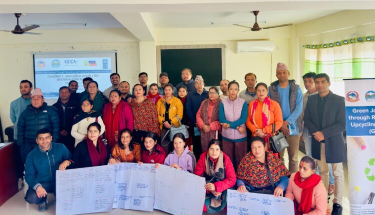 ‘रिसाइक्लिङ’ र ‘अपसाइक्लिङ’ मार्फत हरित रोजगारी सिर्जना परियोजना(जिसिआरयू) अन्तर्गत एक साताका अवधिमा यस प्रकारको सीपमुलक तालिम प्रदान गरिएको आयोजक संस्था दीर्घायु नेपालका सचिव अनिल लामिछानेले जानकारी दिनुभयो ।