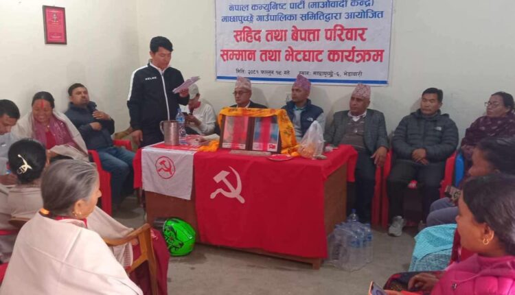 शहीद सप्ताहको अवसर पारेर नेकपा(माओवादी केन्द्र) माछापुच्छ्रे गाउँपालिका समितिले शहीद तथा बेपत्ताका परिवारसँग भेटघाट तथा सम्मान कार्यक्रम आयोजना गरेको हो ।