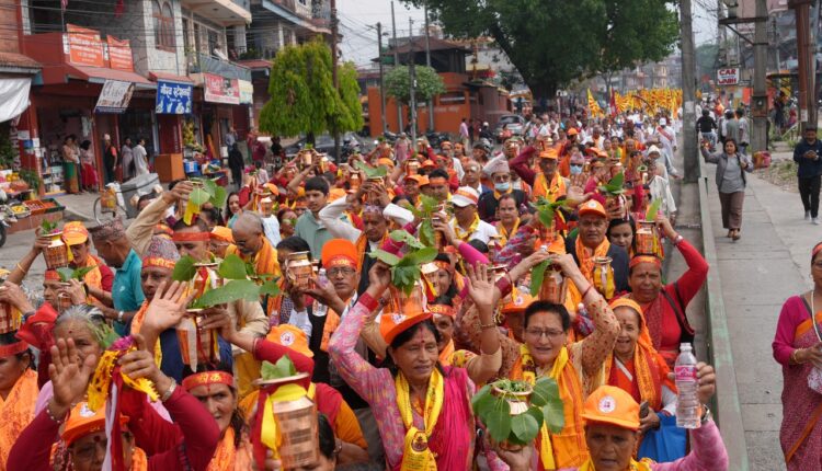 हिमाली आवाज । पोखरामा आज विशाल कलश यात्रा निकालिएको छ । पोखरा महानगरपालिका वडा नं. १७, बिरौटास्थित हरिहर मन्दिर र केही स्थानीयको जग्गामा मानव सेवा फाउण्डेशनद्वारा आयोजित गण्डकी कोटिहोम महायज्ञ अन्तर्गत मंगलबार बिहान ११ हजार कलश सहितको विशाल शोभा कलश यात्रा भव्य रूपमा सम्पन्न भएको हो ।
