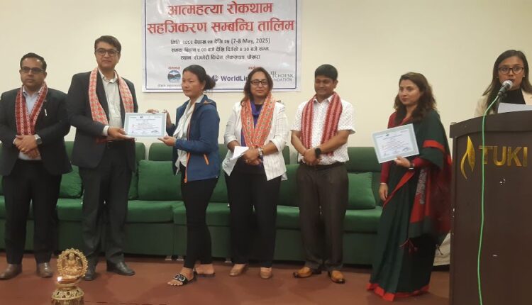 हिमाली आवाज । वल्र्डलिंक कम्युनिकेसन्स लिमिटेड र साइकडेष्क फाउन्डेशनको आयोजना एवम् पोखरा महानरपालिकाको संयोजनमा पोखरामा दुुई दिने आत्महत्या रोकथाम सहजिकरण सम्बन्धी तालिम दिइएको छ ।तालिममा विभिन्न सरोकारवाला क्षेत्र र निकायका ३५ जना प्रशिक्षार्थी सहभागी रहनुुभएको थियो ।