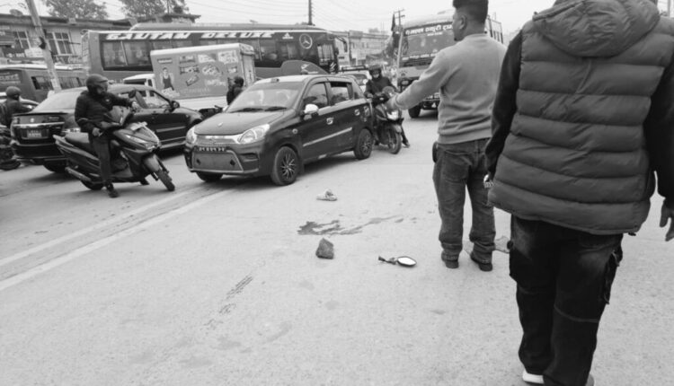 बुधबार दिउँसो थर्पुबाट दमौलीतर्फ गइरहेको ग १ ख ९३९९ नम्बरको यात्रुबाहक बस र विपरीत दिशाबाट आइरहेको ग १७ प ५१४६ नम्बरको मोटरसाइकल ठोक्किएको थियो ।