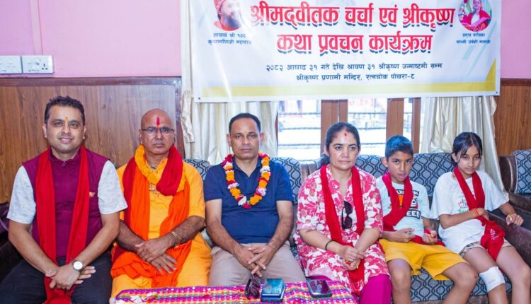 हिमाली आवाज । पोखरा ८ रत्नचोकमा रहेको श्रीकृष्ण प्रणामी मन्दिरमा जारी एक महिने श्रीमदवीतक चर्चा एवं श्रीकृष्ण कथा प्रवचन जारी रहेको छ । श्रीमदवीतकको १२ औं दिन सम्म आइपुग्दा भक्तजनहरुको समेत भीड लाग्ने गरेको छ । आगामी श्रावण ३१ गते श्रीकृष्ण जन्माष्टमी सम्म सञ्चालन हुने श्रीमदवीतक चर्चामा प्रतिष्ठित ब्याक्ति संगै उच्च तहका ब्याक्तिहरुले समेत सहभागीता जनाउदै आएका छन ।