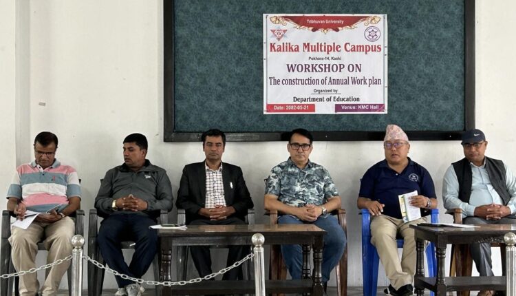 हिमाली आवाज । पोखरा–१४, काजिपोखरीस्थित कालिका बहुमुखी क्याम्पसको शिक्षा विभागले “वार्षिक कार्ययोजना निर्माण” विषयक कार्यशाला सम्पन्न गरेको छ । नेपालका सामुदायिक क्याम्पसहरू मध्ये शैक्षिक, अनुसन्धानात्मक, व्यावसायिक र व्यवहारिक गतिविधिका दृष्टिले अग्रणी मानिने कालिका बहुमुखी क्याम्पसको यस कार्यशालालाई विभागीय नेतृत्व र सम्पूर्ण शैक्षिक परिवारको साझा प्रतिबद्धताका रूपमा लिइएको छ ।