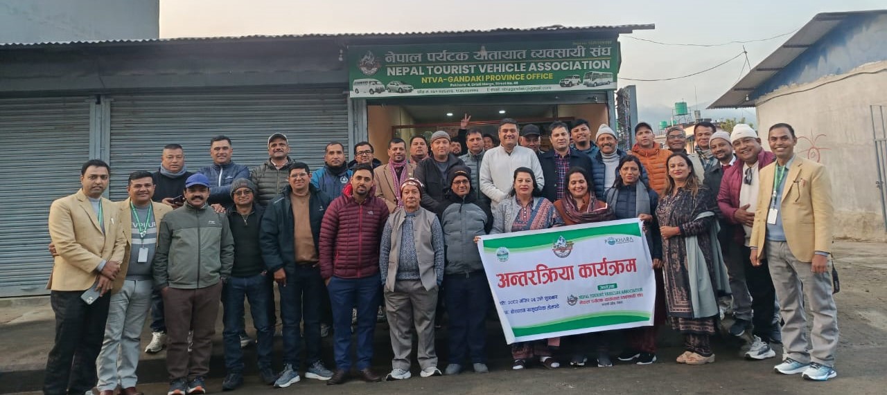 कार्यक्रम अन्तर्गत नेपाल पर्यटन बोर्ड गण्डकी प्रदेशको सहयोगमा आज बाग्लुङमा कास्कीको घान्द्रुक, बाग्लुुङ, म्याग्दी र पर्वतका यातायात सम्बद्ध व्यवसायी, चालक तथा सहचालकलाई अभिमुखीकरण तालिम प्रदान गरिने संघका प्रथम उपाध्यक्ष एवम् कार्यक्रम संयोजक रविप्रसाद अचार्यले जानकारी दिनुुभयो ।
