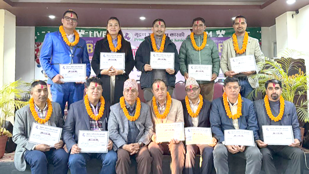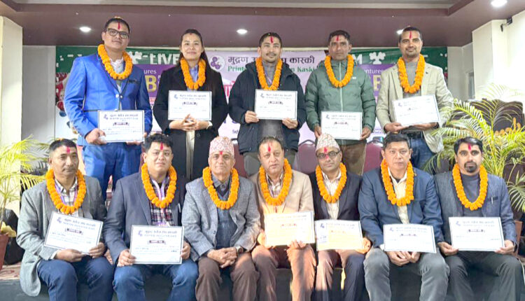 नेपाल मुद्रण उद्योग महासंघको केन्द्रीय परिपत्र अनुसार यसपटक ३ वर्षे कार्यकाललाई घटाएर २ वर्षमा नै निर्वाचन गरिएको हो । निर्वाचन संयोजक पदमलाल श्रेष्ठले नवनिर्वाचित पदाधिकारी तथा सदस्यहरूलाई सपथ ग्रहण गराउनुका साथै प्रमाणपत्र वितरण गरेका थिए । निर्वाचन मण्डल सदस्यमा महासंघका केन्द्रीय उपाध्यक्ष महेन्द्र बजिमया, केन्द्रीय सदस्यहरू चिन्तामणी बास्तोला, बसन्त बास्तोला र कोपिला श्रेष्ठ रहनुभएको थियो ।