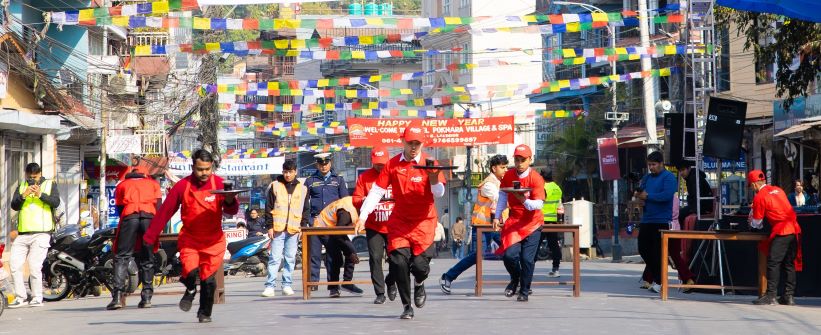 हिमाली आवाज । पर्यटकिय राजधानी पोखराको लेकसाइडमा अंग्रेजी नयाँ वर्षको अवसरमा जारी २७ औं संस्करणको पोखरा सडक महोत्सव अन्तर्गत दोश्रो दिन सोमबार वेटर÷वेट्रेस दौड प्रतियोगिता सम्पन्न भएको छ ।