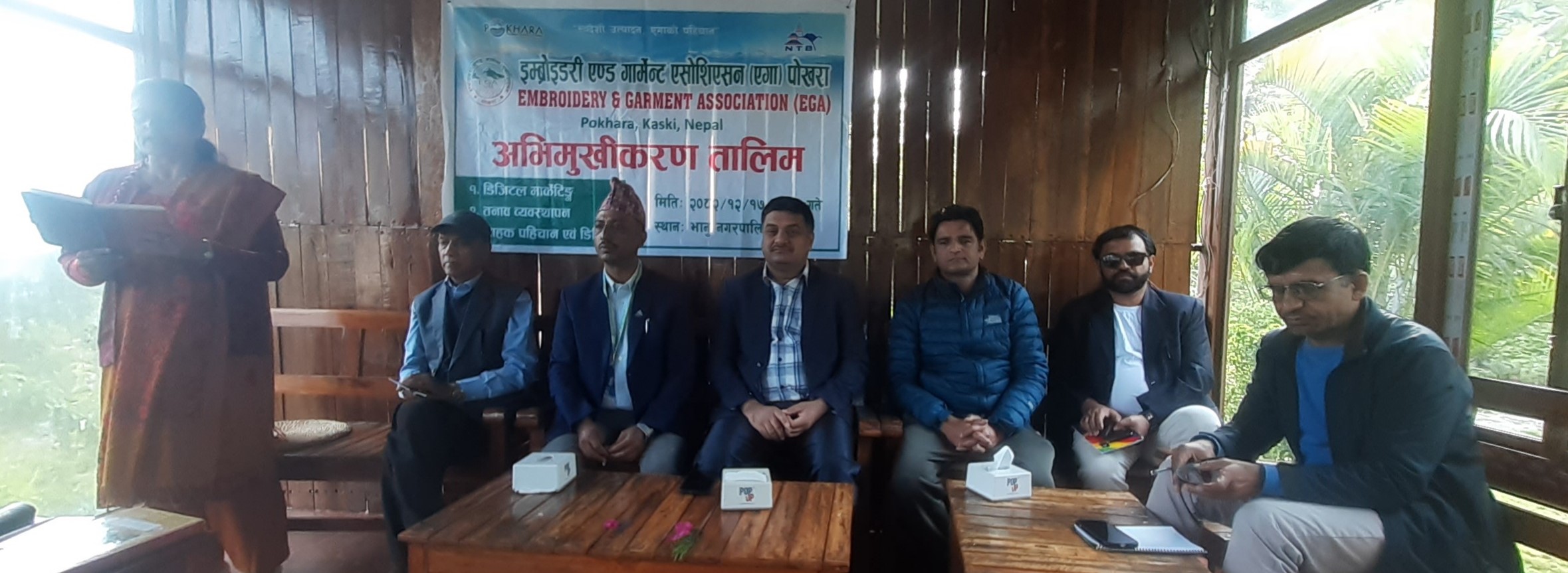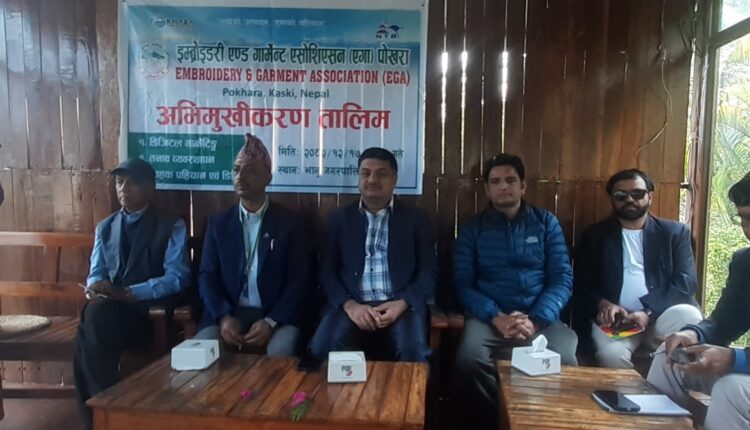हिमाली आवाज । इम्ब्रोइडरी एण्ड गार्मेन्ट एशोसिएसन(एगा) पोखराको आयोजना एवम् नेपाल पर्यटन बोर्ड र पोखरा महानगरपालिकासँगको सहकार्यमा एगा सम्बद्ध व्यवसायीलाई अभिमुखीकरण तालिम प्रदान गरिएको छ ।