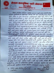 आफ्नो पार्टी भाइरस नियन्त्रणका लागि स्थानीय सरकारसँग सँगसँगै रहेको उल्लेख गर्दै संक्रमितको सम्पर्कमा आएकाहरुलाई पिसीआर परीक्षणका लागि नाम टिपाउन गर्दै सहयोगका लागि सम्पूर्ण पार्टी पंक्ति तथा सबैमा आग्रह गरिएको छ ।